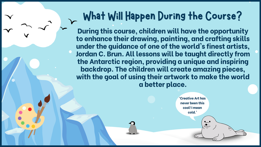 This 10-week course offers students the opportunity to explore art inspired by Antarctica's landscapes and wildlife. Throughout the course, students are continuously encouraged to create and share their art projects with the local, national and global community.